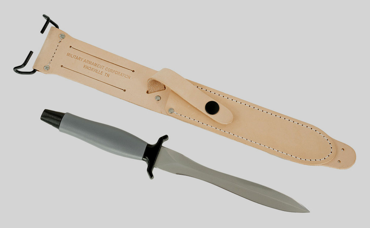The Explorer Survival II was sold with a black leather sheath that is very similar to the Mark II pointed tip sheaths with military belt hanger. The early sheaths had the extended tab for the leg tie. Later sheaths do not have the tab but have 2 holes near the sheath tip through which the leg tie is threaded. The sheaths are unmarked.